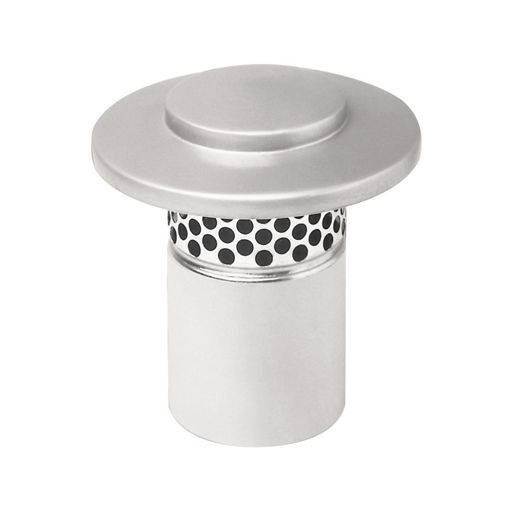 Huv av galvaniserad stålplåt med anslutning till kanalsystem för cirkulär kanaldragning. För utblåsning ovan tak. Försedd med muffanslutning som passar utvändigt på ventilationskanal.