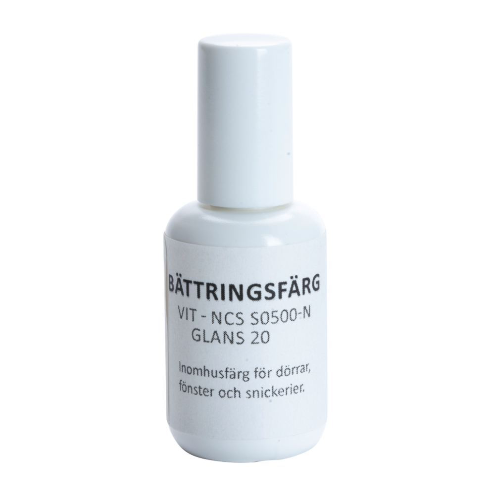 - Den lilla och smidiga färgflaskan med pensel gör det lätt att laga skador på snickerier, dörrar, fönster och andra ytor som har fått sina skönhetsfläckar.
