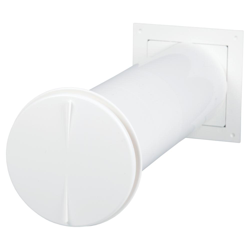Komplett blockventil Ø85 mm som klarar väggtjocklek upp till 310 mm. Har galler med rensbart insektsnät. Fullt justerbar innerdel med tiltbar tallrik. Lämplig att använda i förråd, bodar mm.