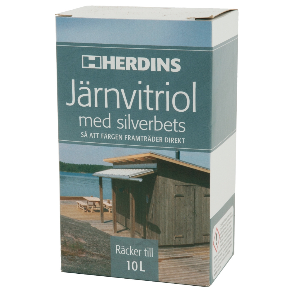 Järnvitriol kan använas som behandling på hyvlat terrassvirke av t.ex. lärk före behandling med Herdins Grå Tjärolja för att ge en djupare och jämnare kulör. Järnvitriolbehandlat virke kan övermålas med slamfärg.