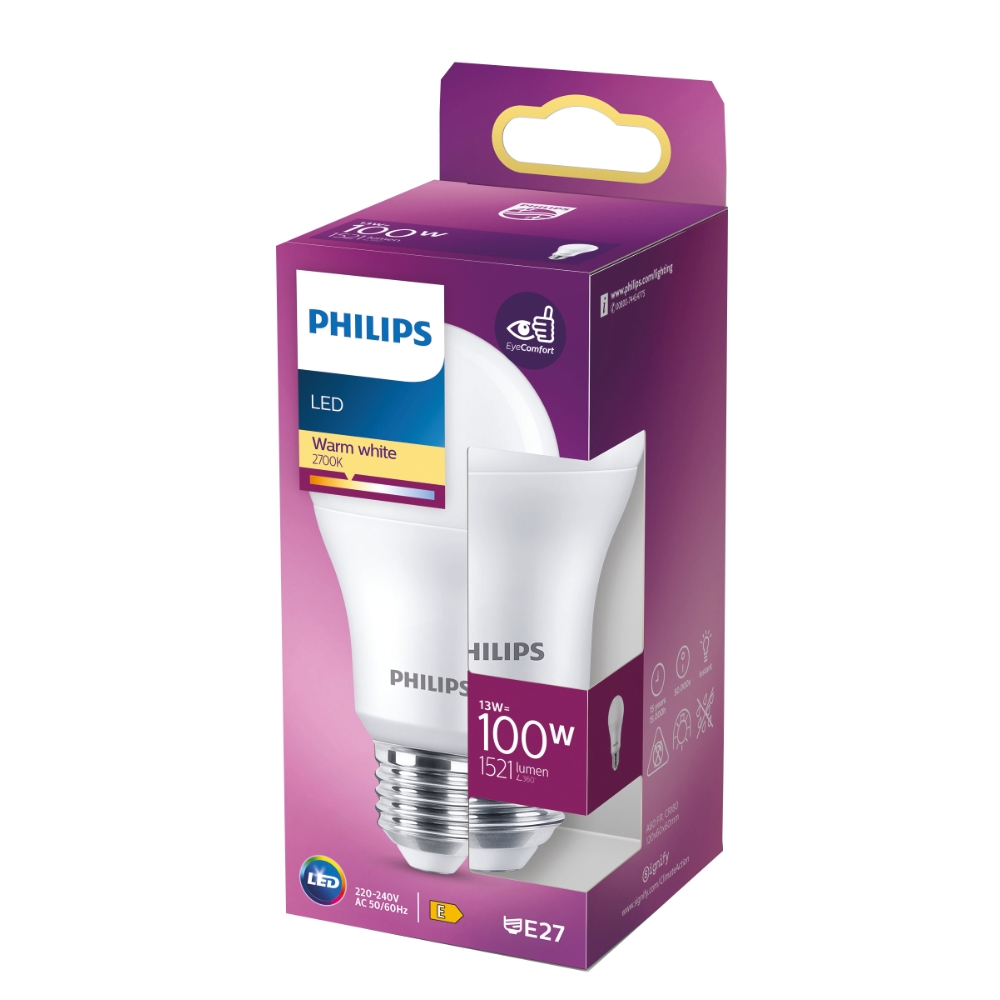 LED-lampa Standard Relä Varmvit Frostad Ej Dimbar EyeComfort Philips