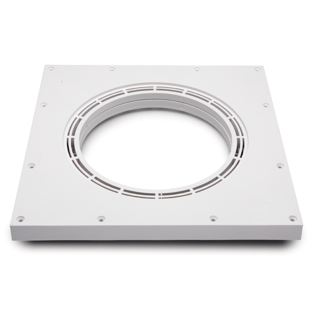 Monteringsplatta för Purus golvbrunnar i 150-serien för träbjälklag. Monteringsplattan består endast av 2 delar, istället för ett flertal delar som våra tidigare modeller har och är vändbar vilket gör att användningsområdet blir bredare då den kan användas både vid installation för plastmatta och för klinkergolv. Den är fyrkantig istället för rund vilket underlättar vid sågning, med ett inbyggt fall så att man slipper bygga fall runt om brunnen, den är slät på ena sidan och räfflad på den andra beroende på om det är installation för plastmatta eller klinkergolv och för att göra det enklare vid spackling då plasten jobbar som en armering. Den vita färgen är bra vid installation för plastmatta då den är pigmentfri. Tillverkad i ABS-plast, limbar, samt har en belastningsklass på 300 kg. Monteringsplattan passar till följande Purus brunnar: Oden och Brage som finns i vårt sortiment. Den passar även till Ymer 50, duschbrunn samt Flex.