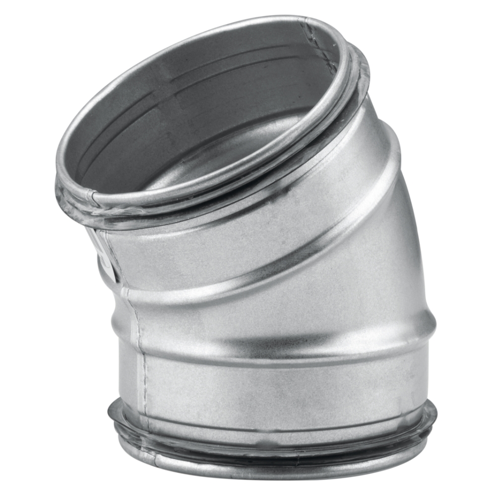 Rörböj kort, extra kort bygglängd. Kanalsystem för cirkulär kanaldragning. Tillverkat av galvaniserad stålplåt.