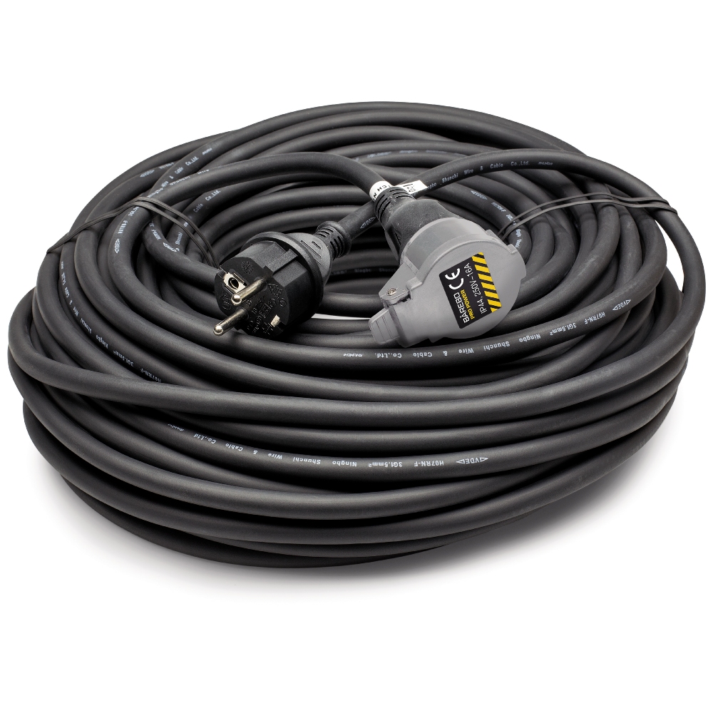 Skarvsladd av oljebeständig, extra förstärkt gummikabel. Självstängande lock. Kabel: RDOE 3G1,5 mm² (H07RN-F). 230V, 16A. Godkänd för utomhusbruk IP44. Förpackade i kartong.
