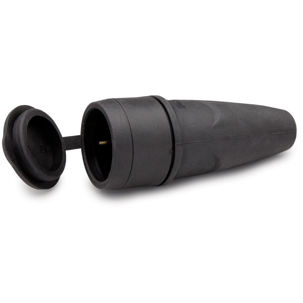 Jordat. I slagtålig gummi. Godkänd för utomhusbruk IP44. 16A. 230V.