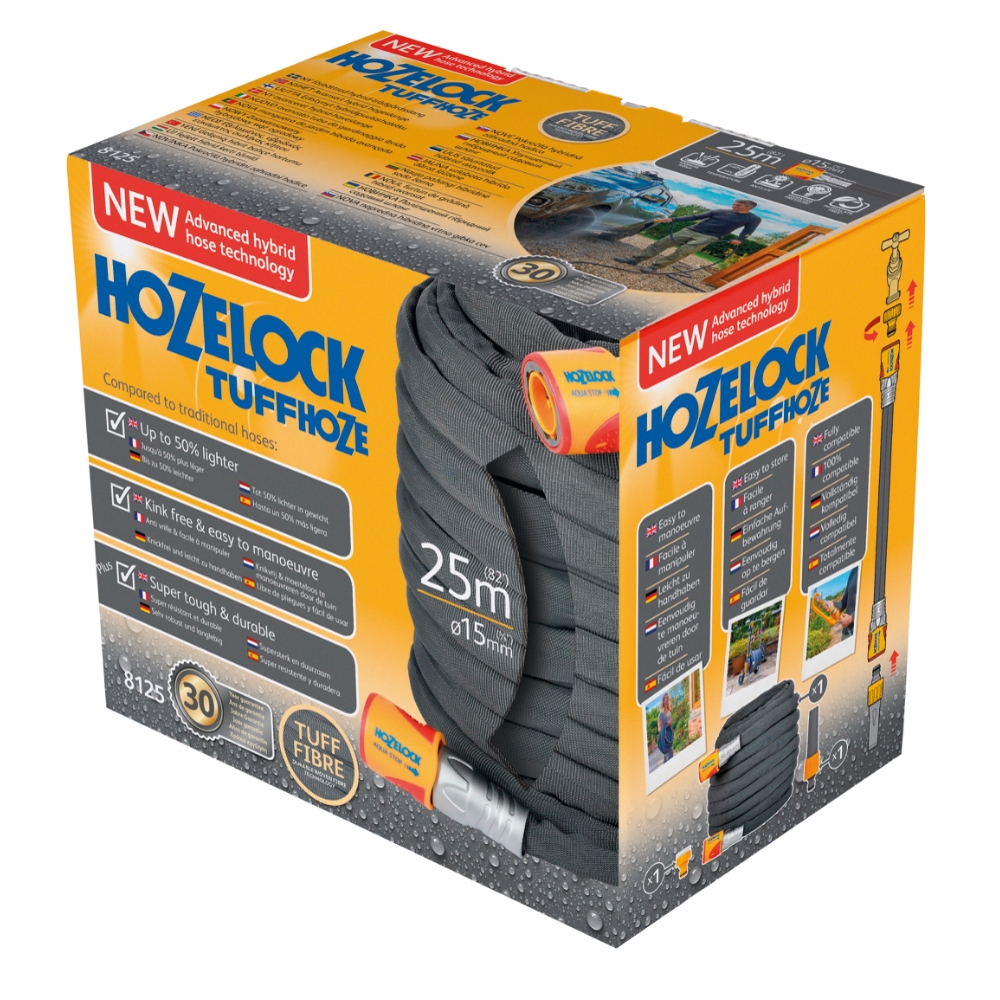 Tålig slang med kombinerad teknologi. Innerlager av PVC och ett yttre av fibervävd textil (Tuff-Fibre).