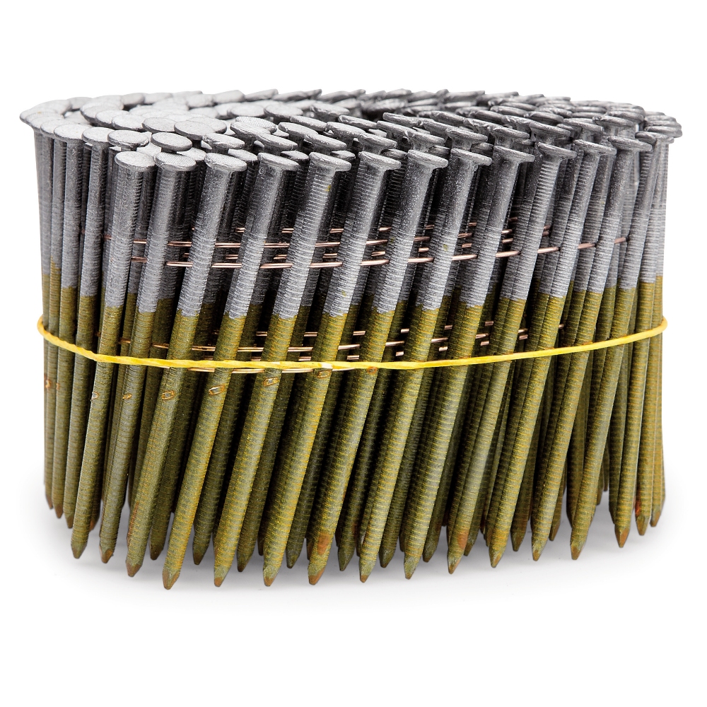 För spikning av takskivor, råspont, utvändig panel eller stomme. Rullbandad 16°. Ytbehandling: Varmförzinkad, korrosivitetsklass C3. LÅDA.