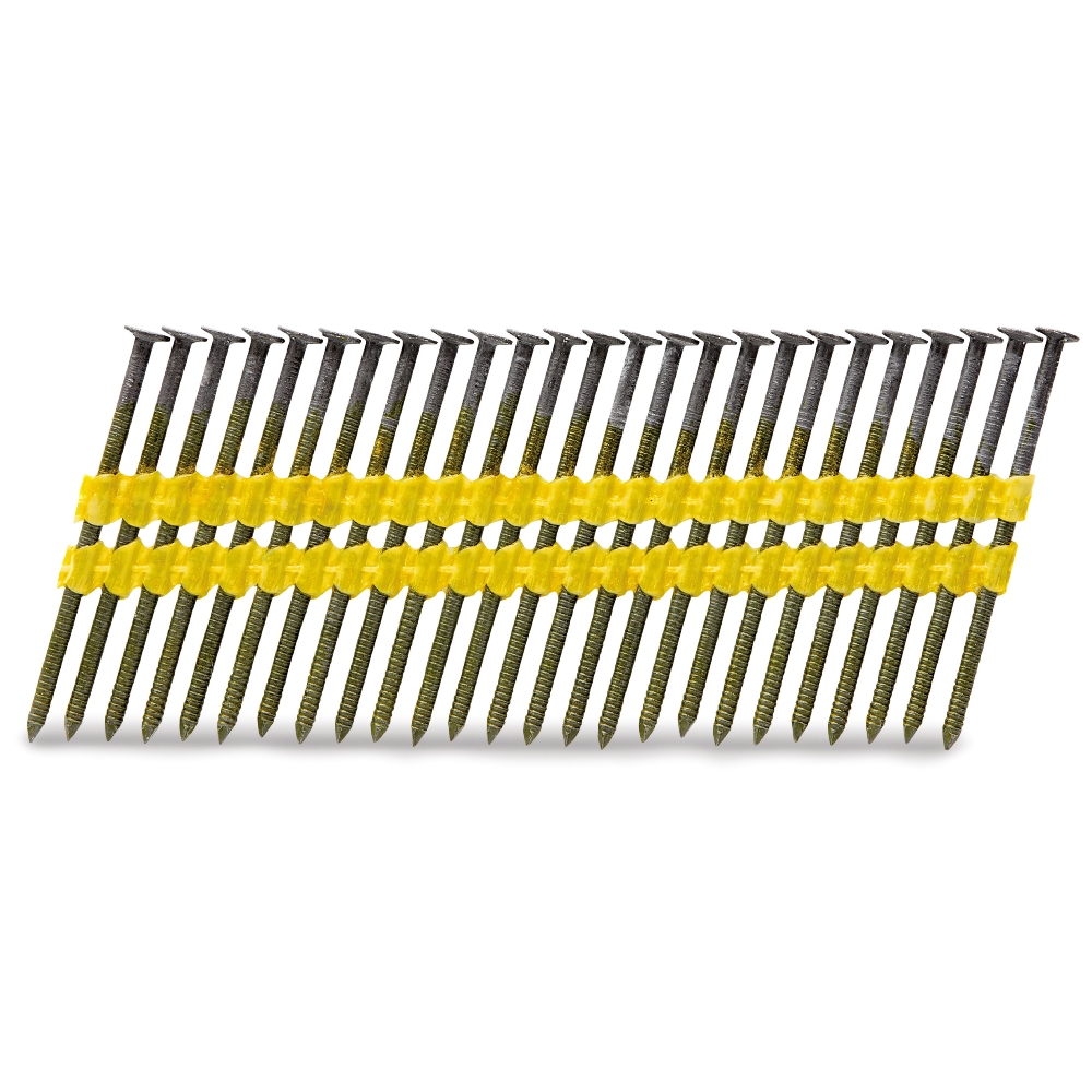 För spikning av tak- och väggskivor, råspont, utvändig panel, stomme eller konstruktion. Plastbandad 21°. Ytbehandling: Varmförzinkad, korrosivitetsklass C3.