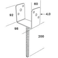 Stolphållare PSU används för ingjutning i betong vid infästning av stolpar, till exempelvis staket, pergola och carport. Avståndet från den vågräta plattan till betongöverkanten får ej överstiga 50 mm. Armeringsjärnets längd är 200 mm, Ø 16. För fastsättning används ankarspik 4,0 eller ankarskruv 4,8. Till bulthålen används M8, M10 bultar.