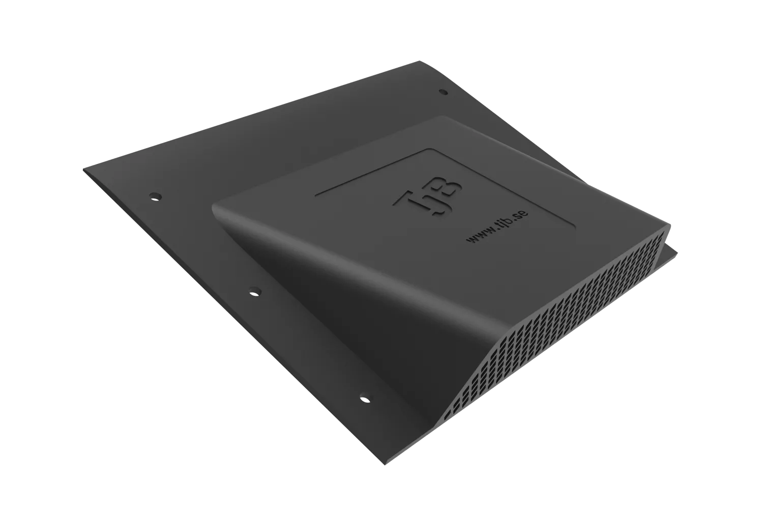 Ventilationsbeslag i plast med stansat nät, allt i ett.