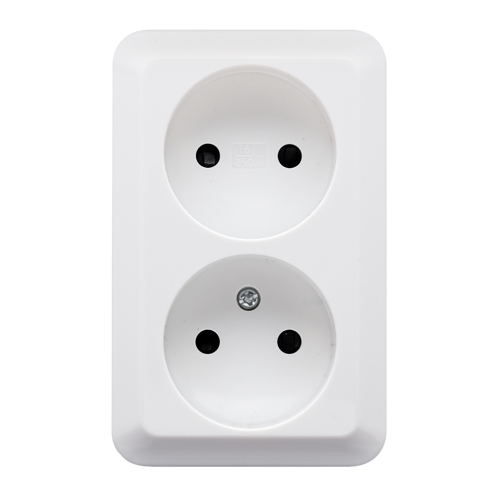 Petskyddade 230V 1,2 och 4-vägs jordade samt ojordade vägguttag för utanpåliggande montage. IP20.
