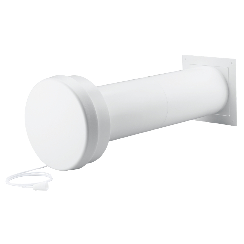 Tilluftsventil för väggmontage. Används vid självdrag och frånluftssystem. I komplett utförande levereras ventilen med genomföring och utvändigt galler.